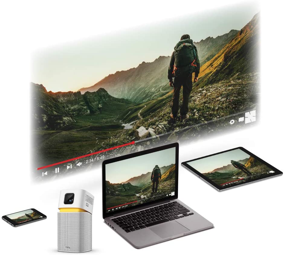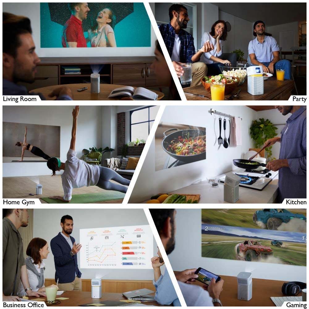 • In-built battery projector with Android (Google Cast) and iOS (Airplay) compatibility for big-screen up to 100 inches entertainment anywhere