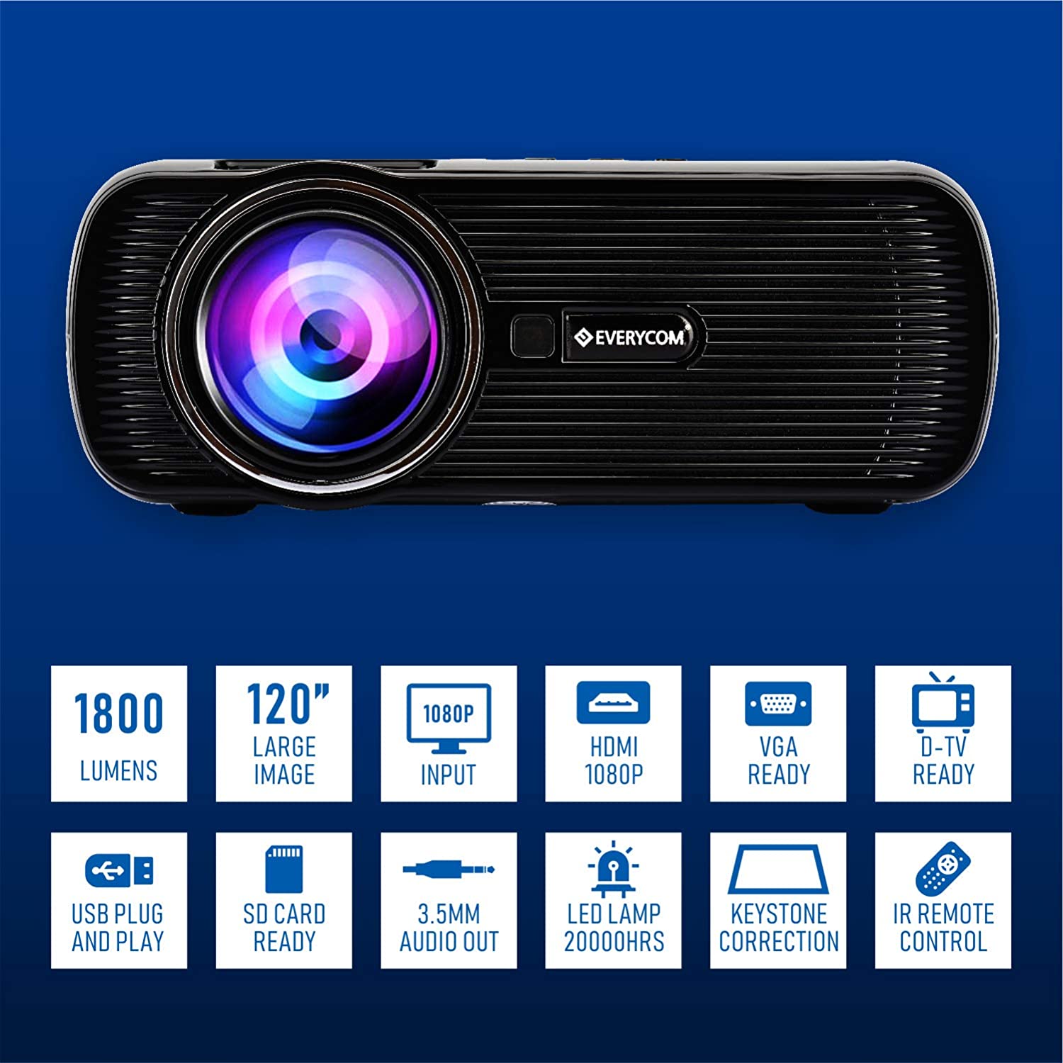 Everycom X7 (1080p Support) LED Projector 1800 Lumen