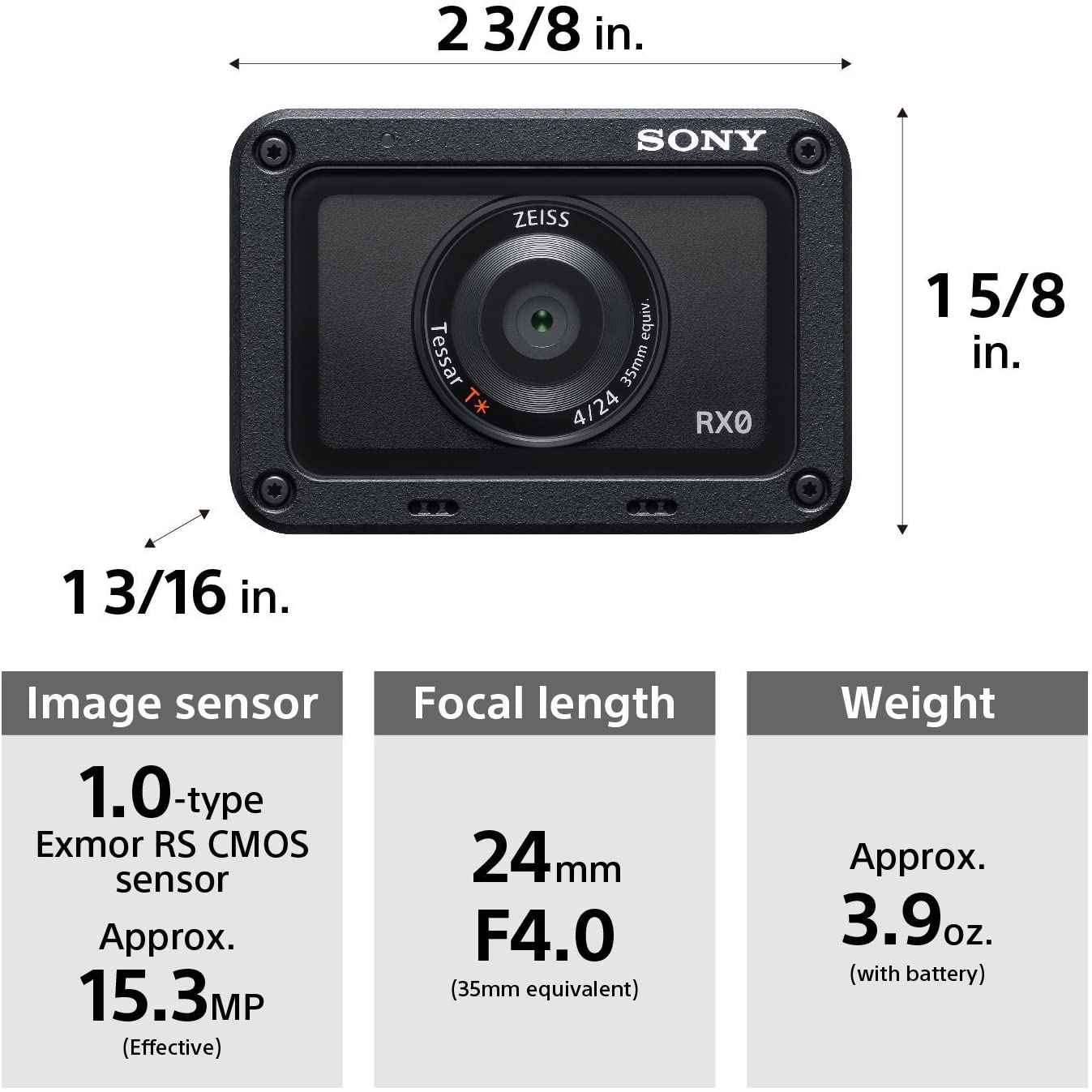 Sony DSC-RX0 1.0 Type Sensor Ultra-Compact Camera with Waterproof and Shockproof Design (Black) Click to open expanded view Sony DSC-RX0 1.0 Type Sensor Ultra-Compact Camera with Waterproof and Shockproof Design (Black)